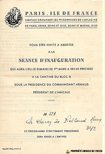 Oflag IID : "Invitation n° 121 from Henri de SANCY.