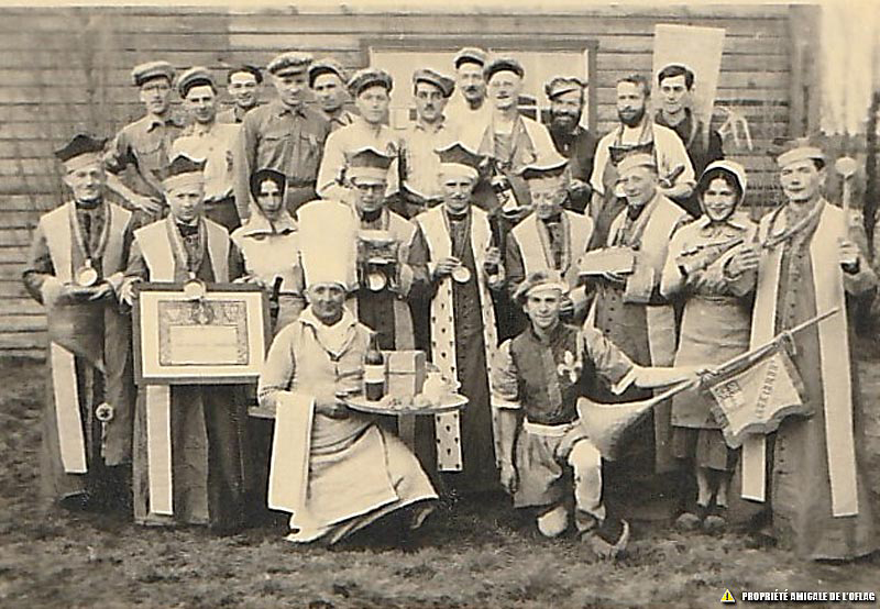 Oflag IID – Gross-Born : 1er mai 1942 : Fête des Provinces Françaises : groupe des bourguignons – Les Chevaliers du Tastevin.