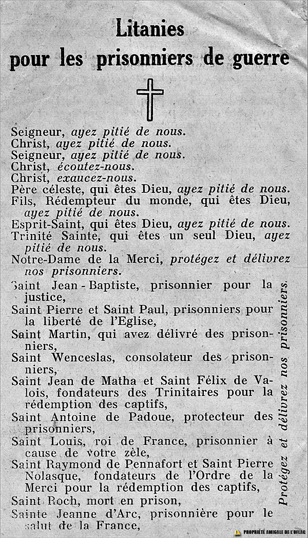 Litanies pour les prisonniers de guerre (verso).