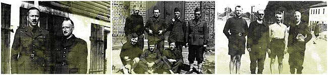 | Oflag XXIB – Schubin : le nom de ce commandant ne nous est pas encore connu. | Oflag XXIB – Schubin : photo extraite du livre de Jean LEDRUZE-DESMAIRES « Flambées de souvenirs » (voir page bibliographie du site). | Oflag XXIB – Schubin : les noms de ces trois Officiers ne sont pas connus (? A droite, peut-être le « commandant G. MERCIER » ?). | |