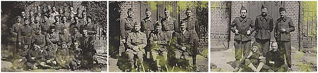 | Oflag XXIB – Schubin : "décembre 1941". A gauche, lieutenant BOUHIN et à droite lieutenant Jean DEMAREZ. Ces 2 officiers étaient auparavant à l'Oflag IID de Gross-Born. | Oflag XXIB – Schubin : "Envoi du 12 Juillet 1942" : le 1er assis en partant de la droite est le lieutenant BOUHIN et le second debout en partant de la droite est le lieutenant Jean DEMAREZ. Ces 2 officiers étaient auparavant à l'Oflag IID de Gross-Born. Les 5 autres officiers ne sont pas connus. Photo prise devant la chapelle de l'Oflag XXIB de Schubin. | Oflag XXIB – Schubin : « Juillet ou Août » 1942 : de gauche à droite : GILLET - Lieutenants Jean DEMAREZ (qui était auparavant à l'Oflag IID de Gross-Born) - PICKEL - VANDENBROUQUE. | |