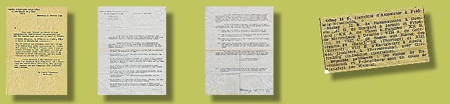 Circulaire n°1 du Centre d'Entraide de l'Oflag IIB datée du 21 février 1945, donnant des nouvelles des prisonniers de ce camp. Recto verso de la circulaire n°2 du Centre d'Entraide de l'Oflag IIB datée du 1er mars 1945, donnant des nouvelles des prisonniers de ce camp. Article de presse donnant des nouvelles des prisonniers de l'Oflag IIB.