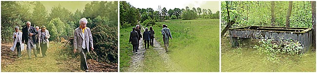 2002 : promenade dans le site de l'Oflag IID du groupe "Korchia-Rongeot", anciens officiers français prisonniers de l'Oflag